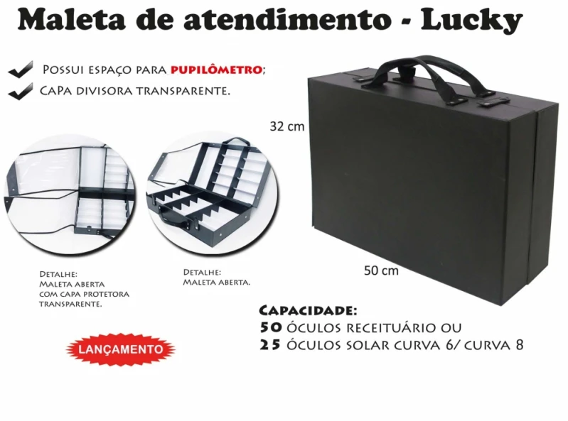 - Versatilidade: Disponíveis em diferentes tamanhos e modelos, as maletas atendem às necessidades específicas de cada cliente, sendo uma solução versátil para o armazenamento e exposição de óculos.